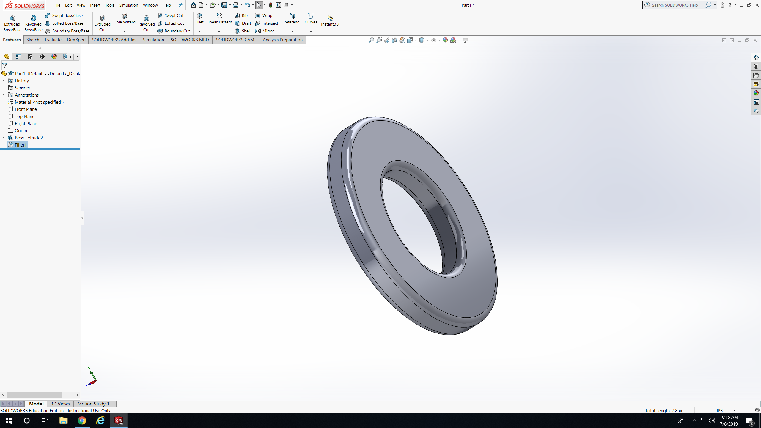 Today we were introduced to the 3D solid modeling software called SolidWorks. Here is a description of what I learned today about 3D solid modeling: So today we took a pretest to start of the day. After that we opened SOLIDWOR and started to create to create a model called the Washer. We put in the dimension of the circles one was 1.0in and the other one was 0.5in and the debt was 0.125in and the edges was all R0.030TYP. We talked about what we going to do later on with Mis. Emily and she is a very nice lady very pretty.